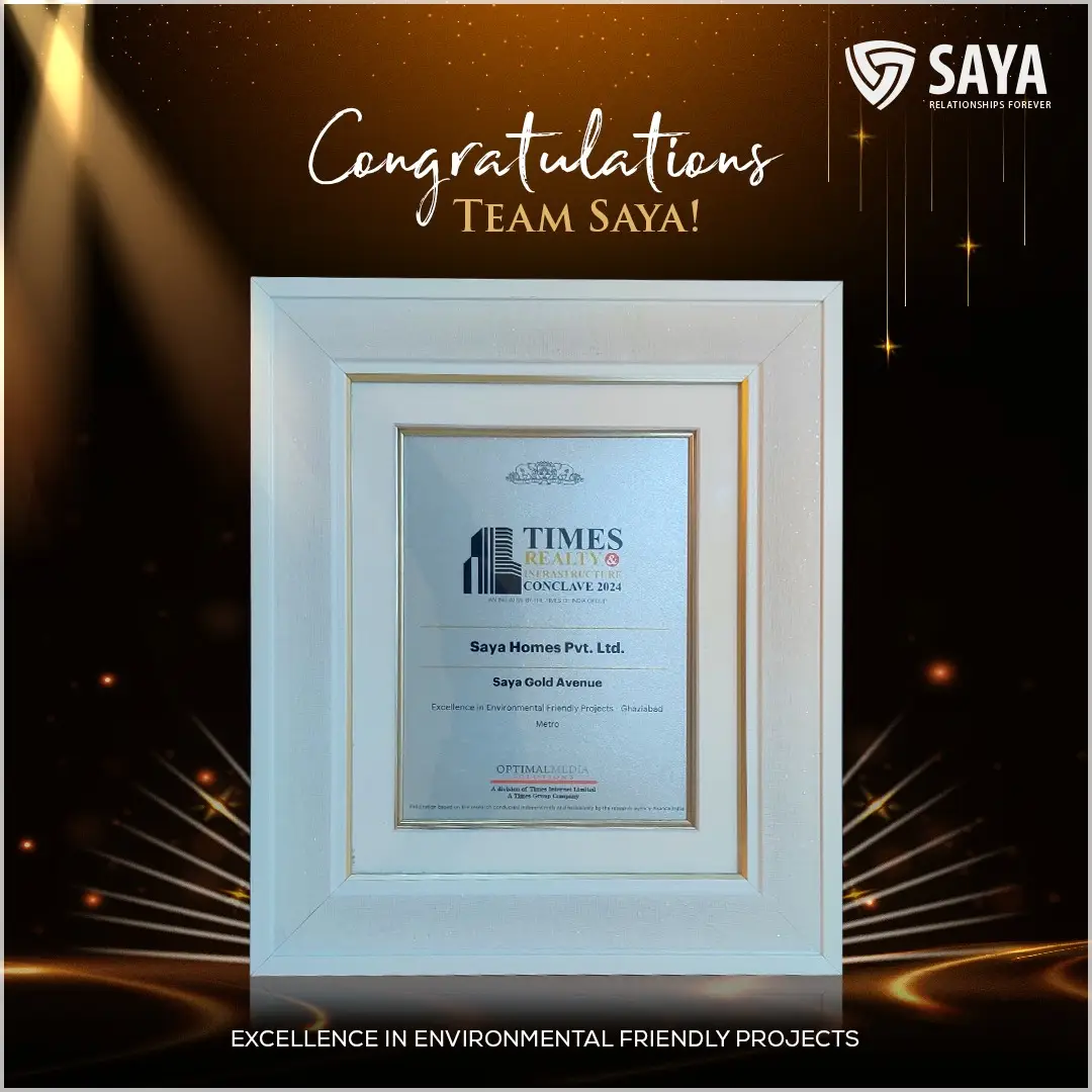 Excellence in Environmental Friendly Projects for Saya Gold Avenue Times Realty & Infrastructure Conclave 2024.
